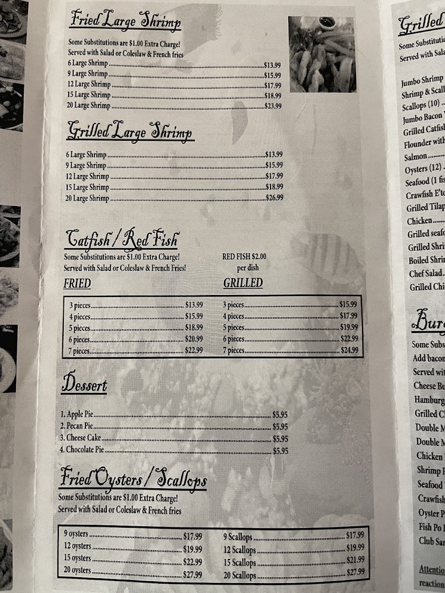 For those craving fried to perfection, their selection of Fried Oysters and Scallops shines with options from 9 to 20 pieces, appealing to both solo diners and families alike. Signature dishes like Chicken Gumbo and Country Fried Steak showcase a comforting familiarity that will make you feel right at home.